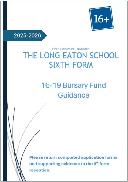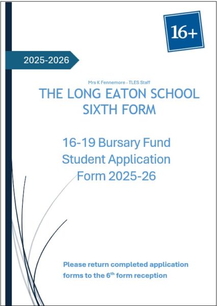 Further information about how we administer the 16-19 Bursary Fund at The Long Eaton School can be found on the document below. You can also find an application form here as well. Should you require further information, please contact the Sixth Form Team on sixthformadmin@longeaton.derbyshire.sch.uk