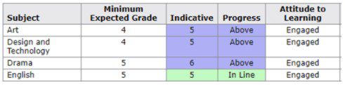 Minimum Expected Grade: For each subject you will see a minimum expected grade. This is an indication of how students with similar starting points achieve at GCSE nationally. Many will achieve this grade, but we hope your child will achieve above this.
